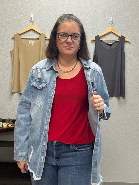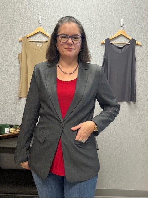 The perfect foundation piece for any wardrobe, this layering tank top in soft grey features a stretchy fabric that moves with you throughout the day. Its versatile neutral tone pairs effortlessly with everything from casual basics to polished separates, making it an essential staple for building cohesive outfits. The comfortable, form-fitting design works beautifully as a standalone piece or layered under sheer tops and open-front garments for added dimension and coverage.
